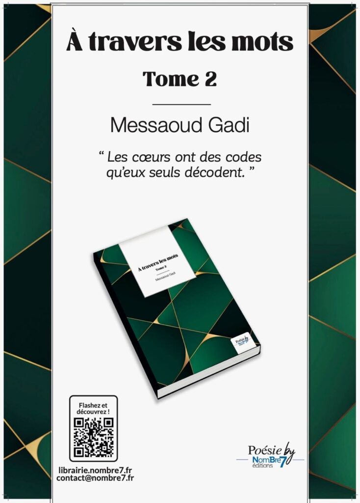 Le livre À travers les mots, Tome 2 de Messaoud Gadi est une œuvre poétique émouvante, publiée en mai 2023 aux éditions Nombre 7, qui explore les émotions profondes de l’existence avec une sensibilité rare. À travers des vers simples et poignants, l’auteur invite à embrasser le bonheur quotidien, comme dans cet extrait évocateur : « Choisis le bonheur, ouvre ton cœur, sèche tes pleurs, sème des fleurs partout et ailleurs comme un enfant ».